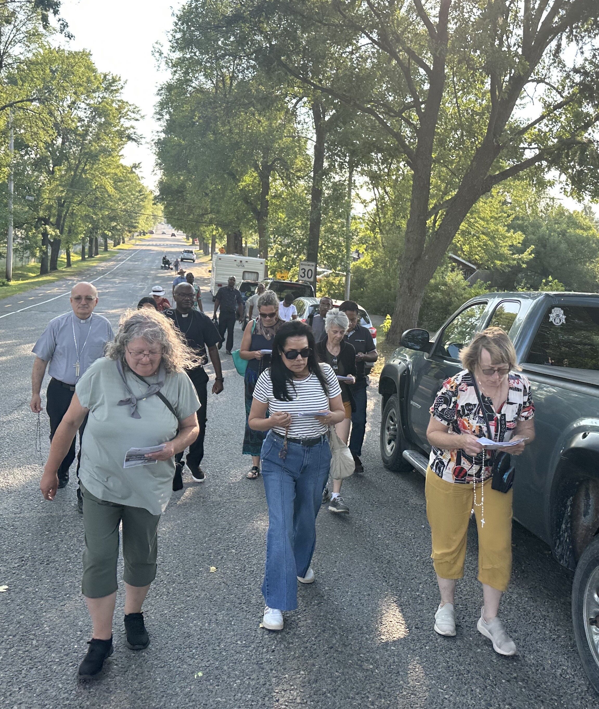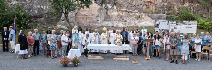 Les fidèles furent au rendez-vous encore cette année pour le traditionnel pèlerinage diocésain de la Fête de l'Assomption à Ville-Marie. Le programme de la journée comportait dès 15h00 la prière pour les malades (avec l'onction) à l'église Notre-Dame-du-Rosaire de Ville-Marie, suivie d'une animation par Guylaine Boisvert et Soeur Sophie Adekplovi sur le thème de l'Espérance (en lien avec l'Année Sainte, Pèlerins de l'Espérance). Un souper communautaire a été servi au sous-sol de l'église, après quoi les pèlerins ont marché vers le site de la grotte tout en récitant le chapelet en groupe. Au site, en attendant les pèlerins à pied, le chapelet a aussi été récité pour le pèlerins déjà sur place, prière animée par Soeurs Madeleine Dumas et Jacqueline Laurence, s.c.o..