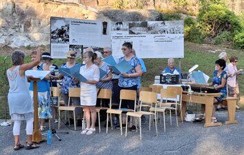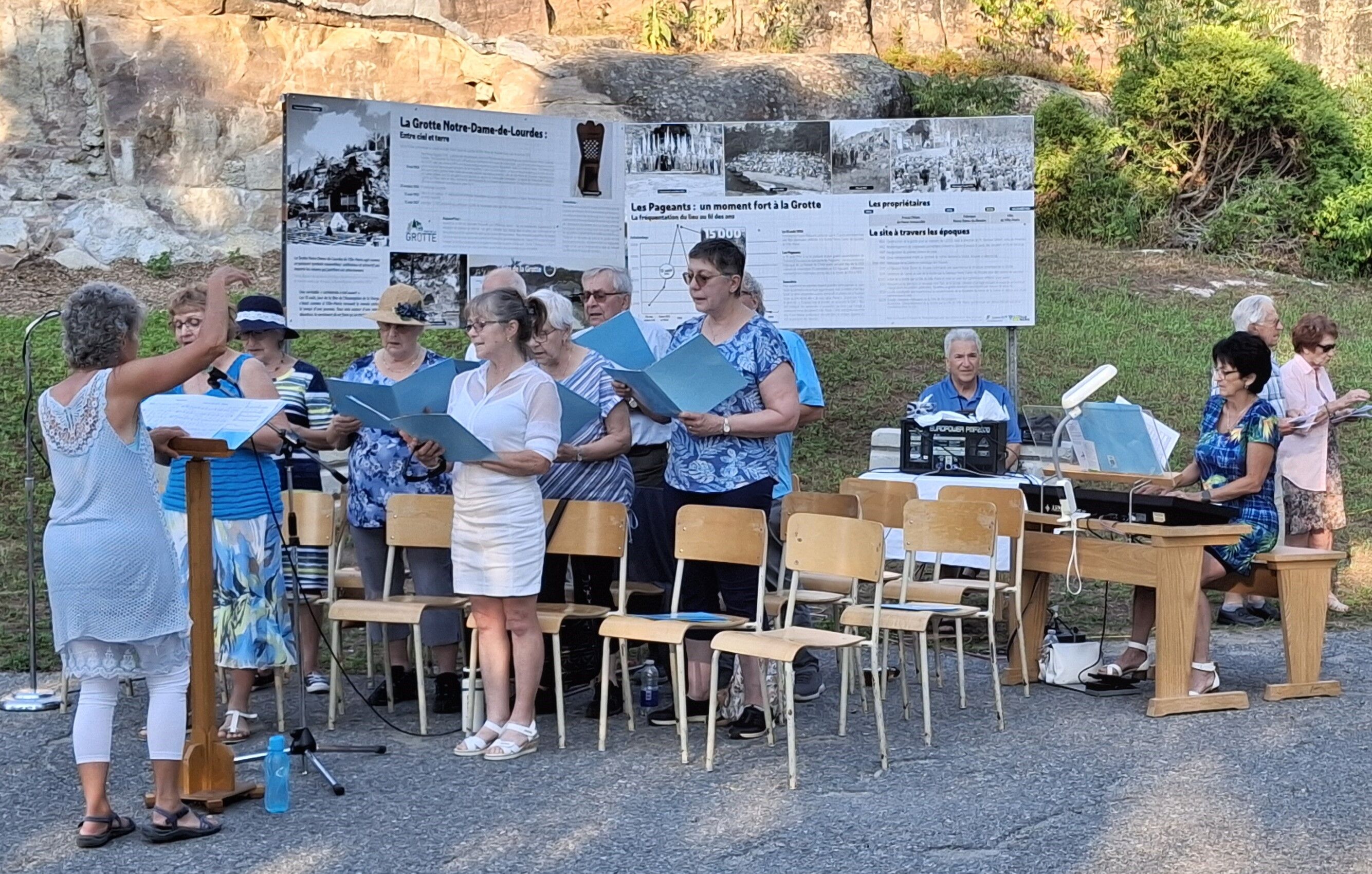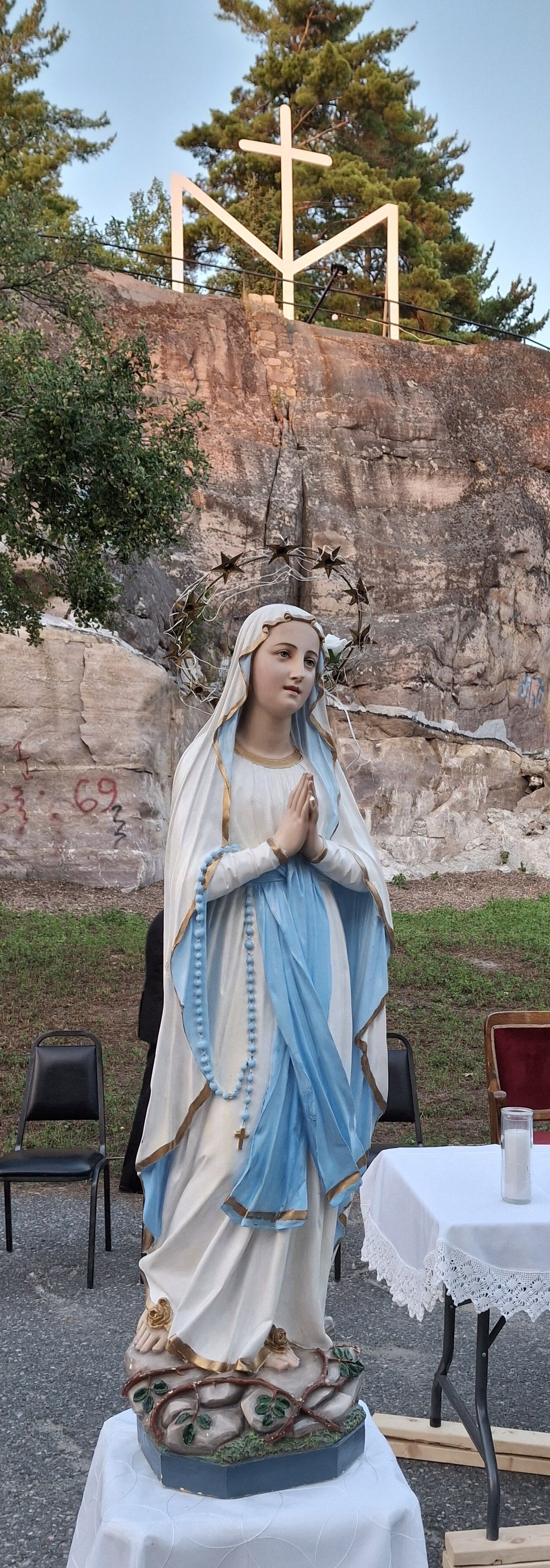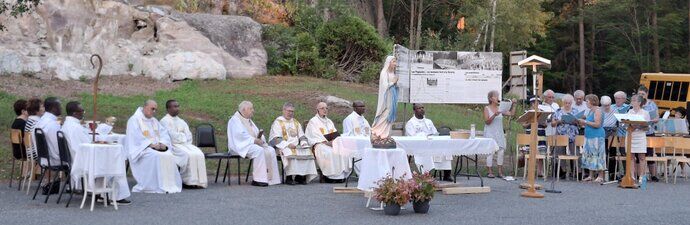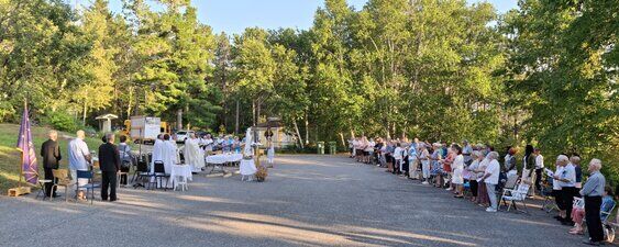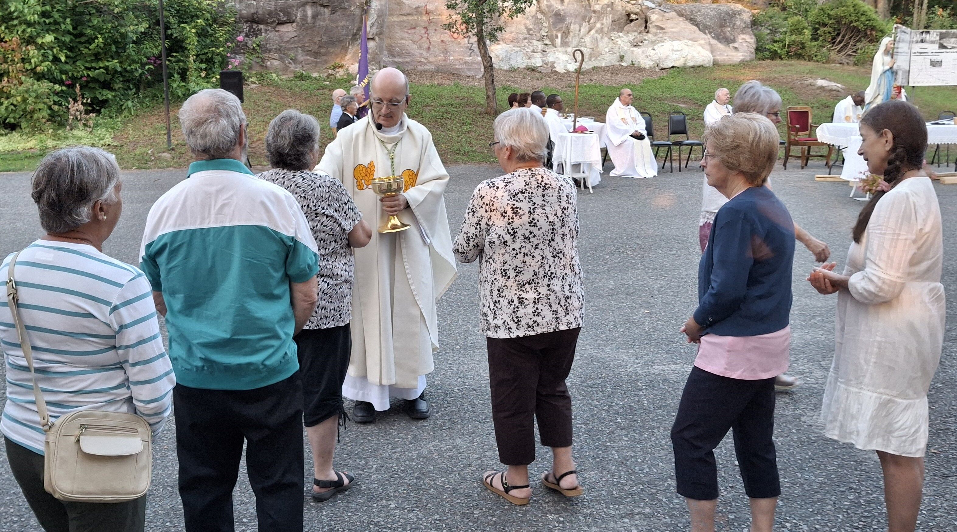 La température était un peu plus chaude que les prévisions annoncées (environ 27 C), mais la fraîcheur de la fin de soirée a vite amené le confort, accompagné d'une légère brise, une température idéale pour une messe en plein air. Un décompte indique une assistance d'environ 125 personnes, comparable aux assistances depuis la reprise post-pandémie du pèlerinage.