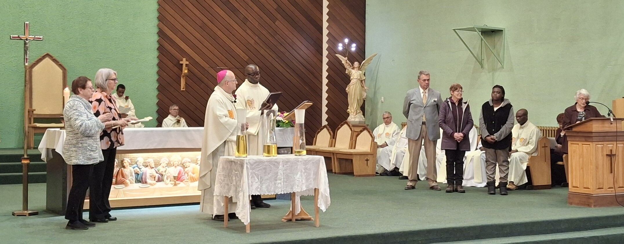 Le renouvellement des engagements des laïcs, des diacres, des agents en pastorale, des religieuses, des prêtres, de même que l'évêque, font partie des cérémonies de la messe chrismale. La consécration des huiles saintes qui seront utilisées durant la prochaine année dans les paroisses et autres lieux de pratique figure aussi au programme de la célébration. Bien que la messe chrismale s'étend sur deux bonnes heures, le temps semble filer. Ce rassemblement est un signe de solidarité entre nous, en Église, en cette Semaine Sainte et notre montée vers la Fête de la Résurrection, ce dimanche.