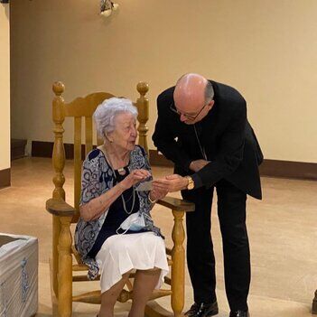 Bénédicité avant le repas communautaire à la fin de la visite pastorale, le 21 mai 2022 (église Saint-Martin-de-Tours)